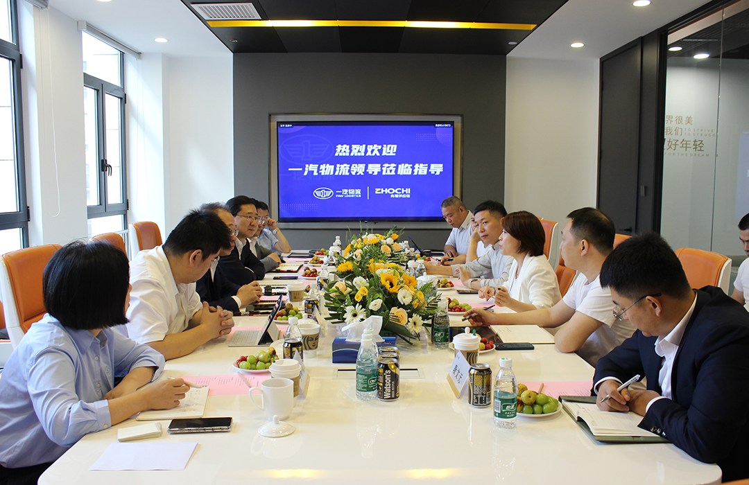 9月25日,一汽物流董事长、党委书记张巍及一汽物流副总经理丁继武等一行莅临中峰国际供应链管理集团有限公司交流指导,公司董事长陈建、副总裁张苹及各部门负责人全程陪同,双方就资源共享、降本增效、数字化平台建设等方面展开了深入交流及探讨。